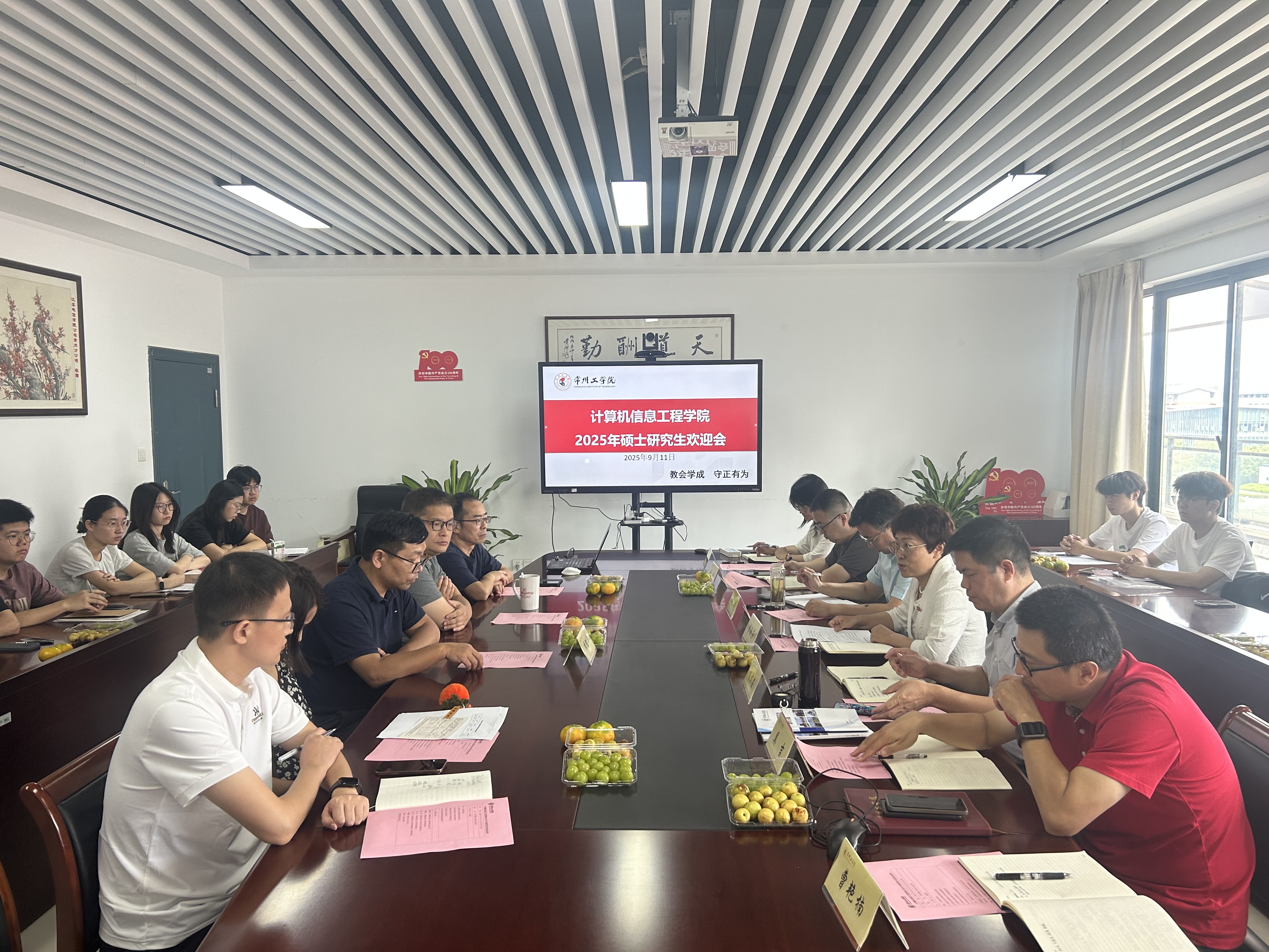 9月11日上午,计算机信息工程学院举行2025级硕士研究生迎新会,学院党委书记李晓芳、院长胡智喜、党委副书记陶骏、副院长奚吉、跟岗任职副院长徐哲、研究生导师代表及全体2025级研究生出席了本次活动。会议由徐哲主持。