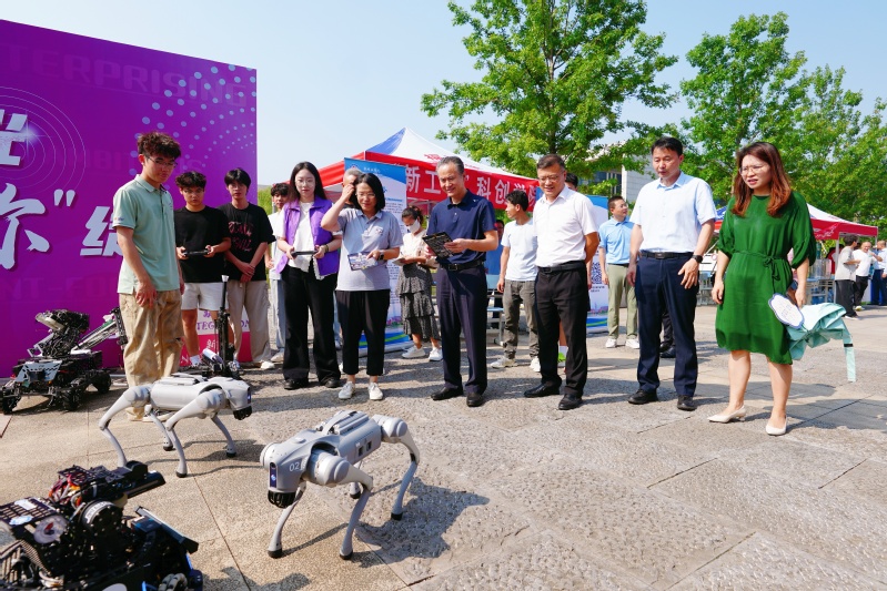迎新实时报到大数据系统,院系报到、专业报到、报到时间、报到率、性别报到等情况实时掌握,一目了然。无人机、飞行模拟器展演,以全体新生名字绘成的“开机仪式”“I love 化材”,“常工FA”战队、机器人社团设计组装的机器狗、步兵机器人展示,非遗漆扇现场制作,“满Zn V Sn遇见U 为Zn Cu Xe Ga U”(满心欢喜遇见你,为新同学加油),现场直播,文创袋,家长给孩子送寄语,相关专业学生以迎新为内容进行课程实训,校园盲盒探索、时光胶囊,融合校园四季风物元素的镜子、卡包等文创,“全民反诈 你我同行”卡套……各二级学院迎新活动可谓百花齐放、异彩纷呈,彰显学院(学科)特色,为新生们的常工记忆写下热烈欢快的序章。